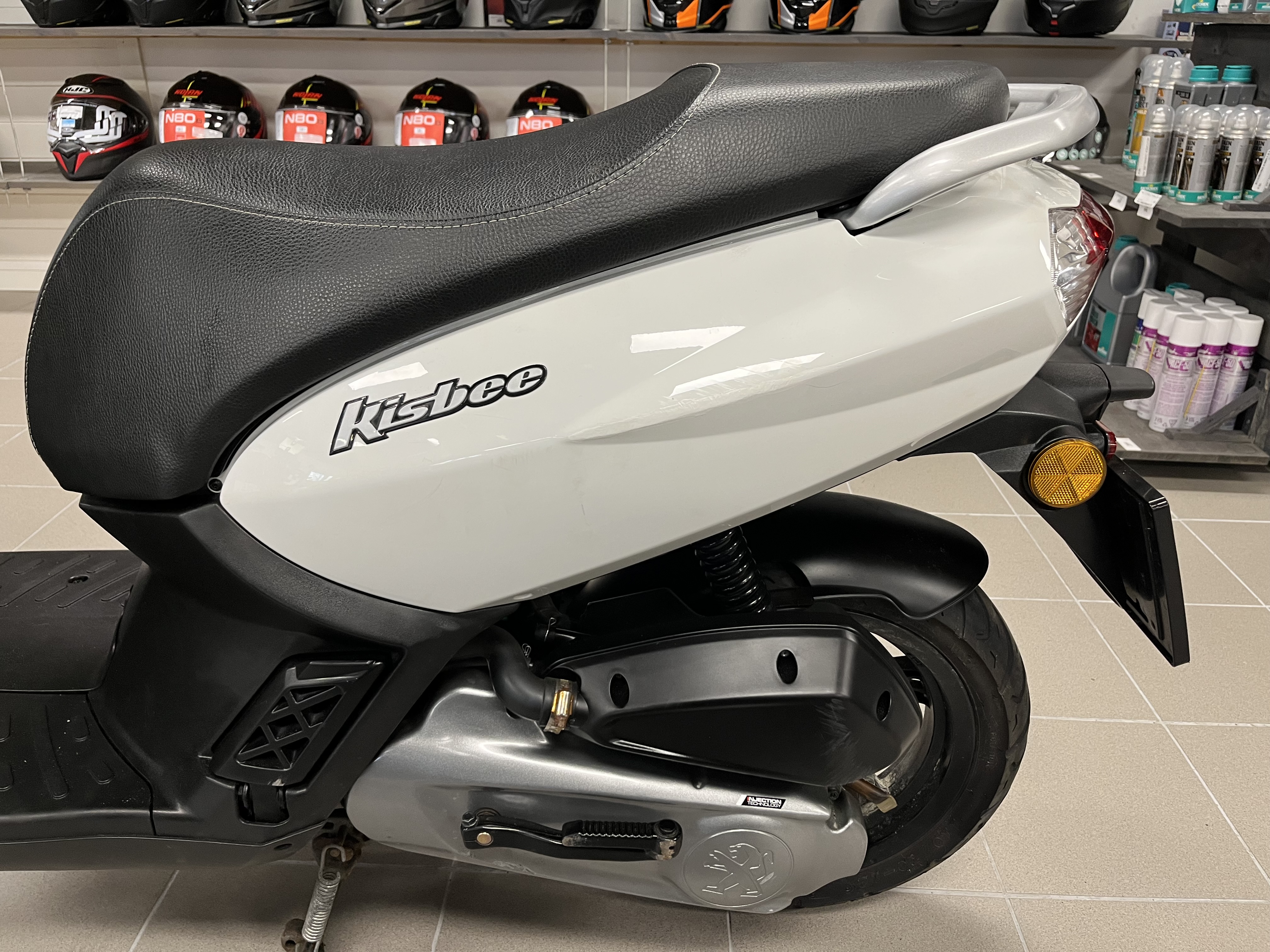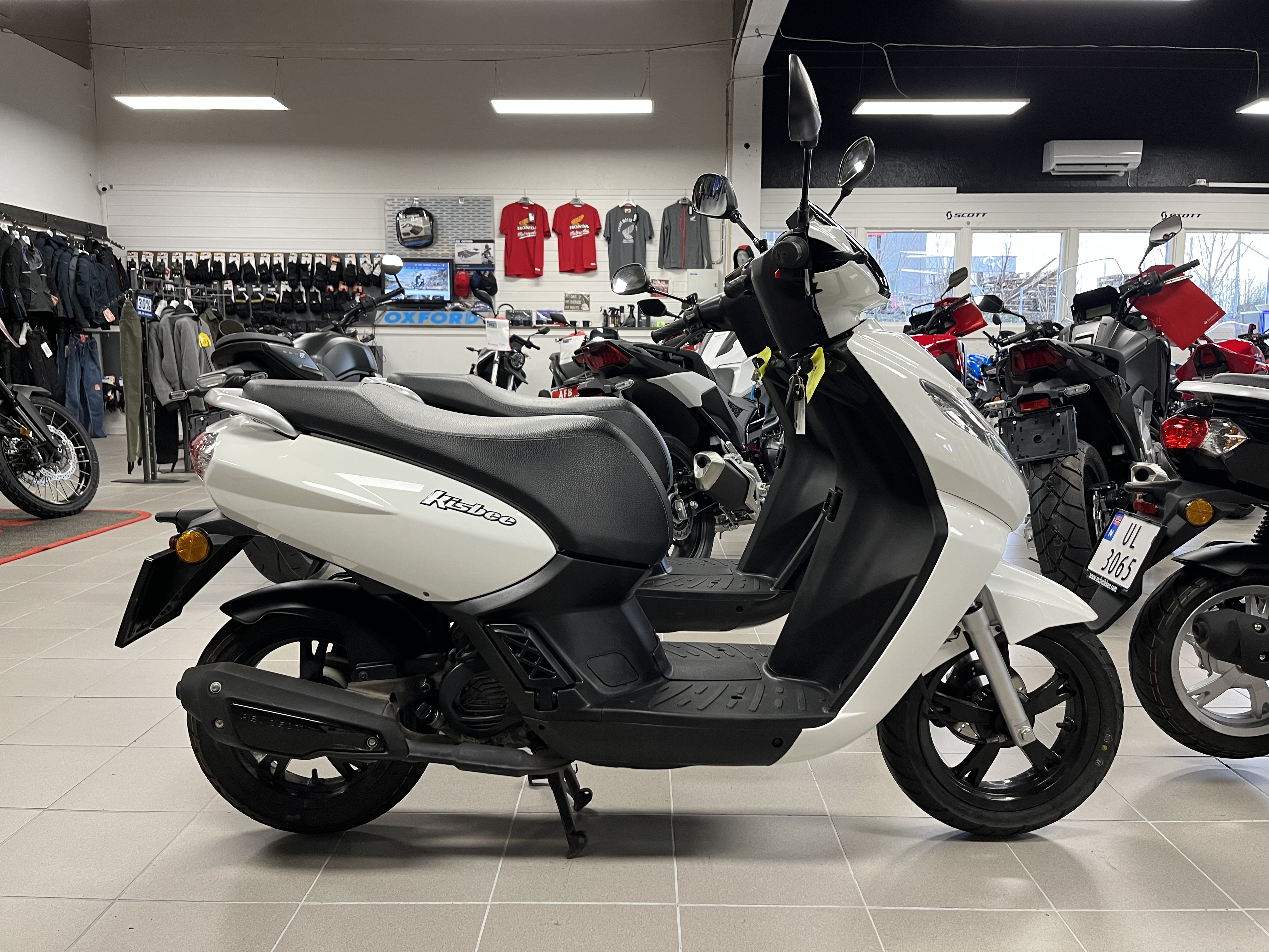 Scooteren har skraper som er flekket med lakk på begge sidene bak, men er meget pen ellers.