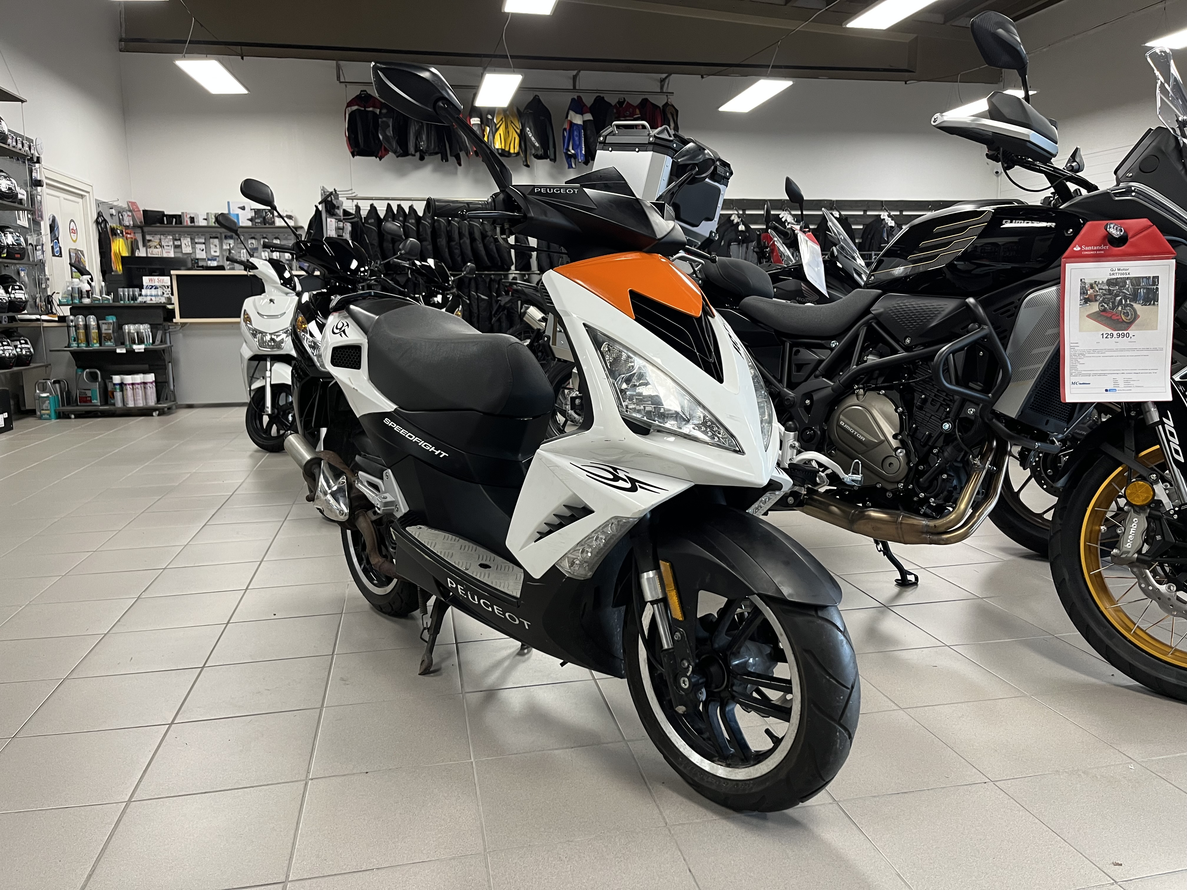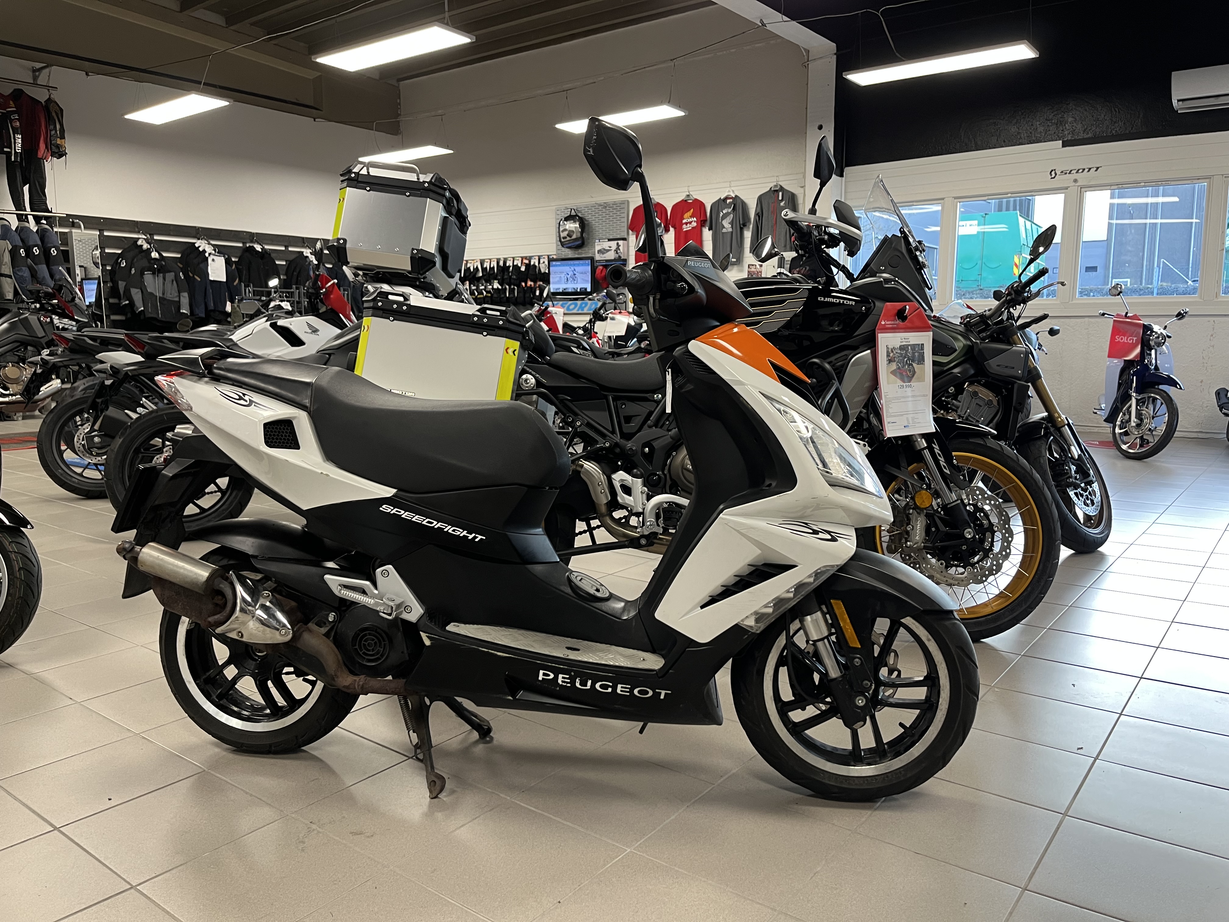 Peugeot Speedfight 3 2-takt.Grei scooter, ikke strøken men i grei bruksstand.Km.stand er 9700 på chassi og 7200 på motor og drivverk.Selges som outlet uten garanti.Registreringsavgift kr. 631,- kommer i tillegg
