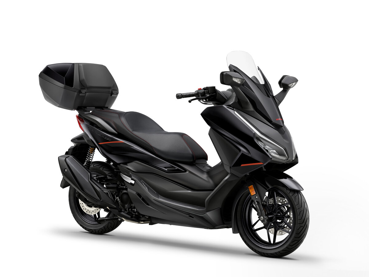 - 26YM Forza 350 Special Edition is also available exclusively in Pearl Nightstar Black with red graphics and stitching.