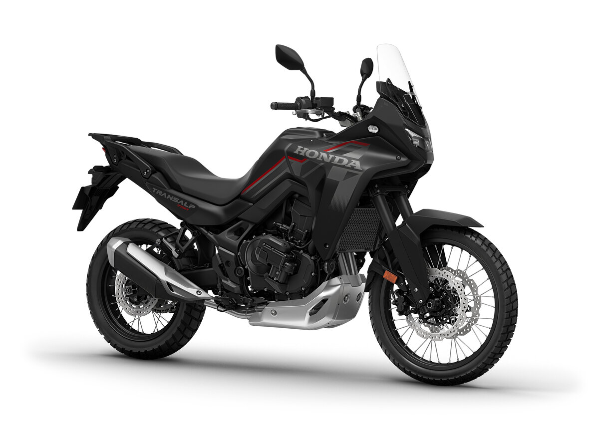 Honda XL750 Transalp E-clutch Oppgradert 2026 modell. Model updates: For 26YM, it receives a serious upgrade choice in the form of Honda E-Clutch with TBW technology. Honda E-Clutch versions also gain a stylish new aluminium skid-plate for added protection and a boost of stylish ruggedness. As before the eight-valve, parallel twin-cylinder engine delivers 67.5kW and 75Nm; Throttle By Wire (TBW) also serves up four default riding modes plus two User options. and is tied in with the five-level Honda Selectable Torque Control (HSTC) with integrated Wheelie Control and the three levels of Engine Braking and Power. The steel frame wears full Showa suspension: 43mm SFF-CATM USD forks and rear shock working through Pro-Link and for 26YM both front and rear suspension are equipped with compression and rebound damping adjustment. Dual, two-piston brake calipers bite hard up front and 21/18-inch wheels wear tubed tyres. The Transalp’s premium specification includes dual LED projector headlights, a five-inch TFT screen with Honda RoadSync smartphone connectivity and four-way toggle switch, auto-indicator cancel and Emergency Stop Signals (ESS) technology.